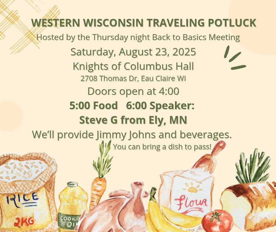 - Aug 23rd: Back to Basics Western WI Traveling Potluck (Eau Claire)