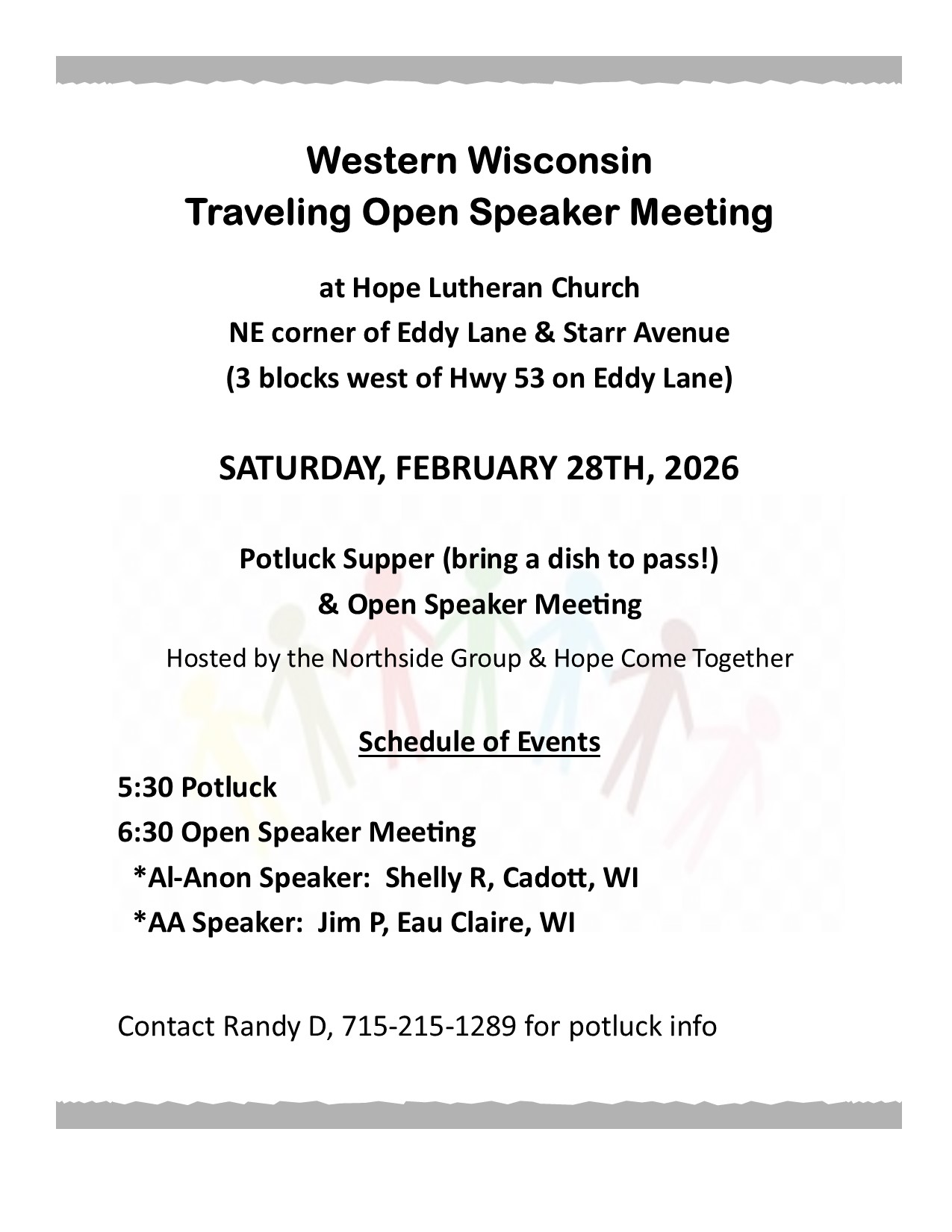 - Feb 22nd 2025 : Western Wisconsin Traveling Open Speaker Meeting (Chippewa)